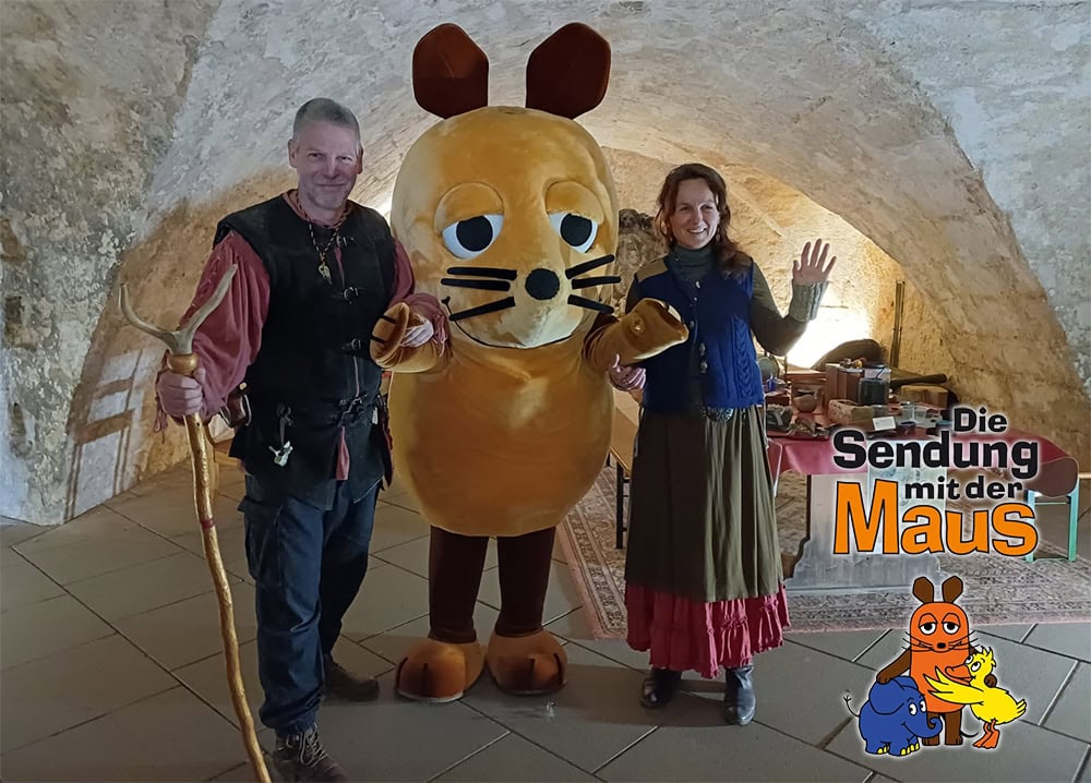 Die Maus ist zu Besuch in den unterirdischen Gewölberäumen auf dem Stein des Königs. Dort versucht sie zusammen mit Baron von Klettenberg, seines Zeichens Alchemist, unedle Stoffe in edle Stoffe zu verwandeln und Gold herzustellen. In die Rolle der historischen Person, die nach mehreren Jahren als Gefangener auf der Festung auch hier ihr Ende fand, schlüpfte unser Buchautor und Experimenteller Archäologe Mario Sempf.