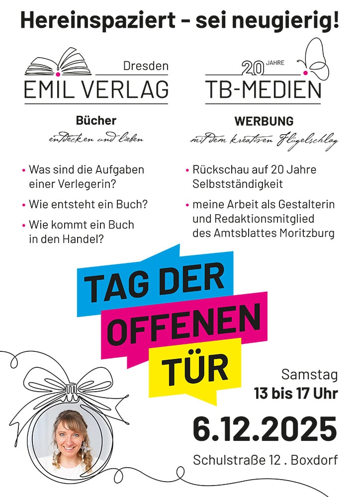 Liebe Einwohner des Landkreises Meißen, Laura freut sich auf euren Besuch und die Kinder- und Sachbücher aus dem EMIL Verlag Dresden könnt ihr ganz nebenbei entdecken. Regional genial!